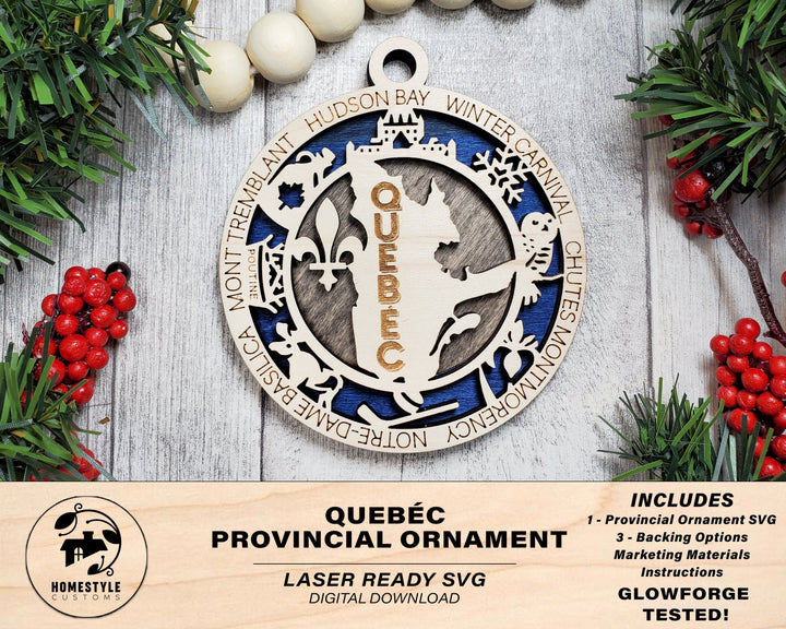 Quebec Provincial Ornament - Canada - SVG File Download - Sized for Glowforge - Laser Ready Digital Files
