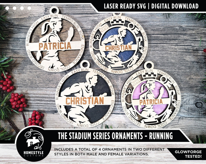Running - Stadium Series Ornaments - 4 Unique designs - SVG, PDF, AI File Download - Sized for Glowforge
