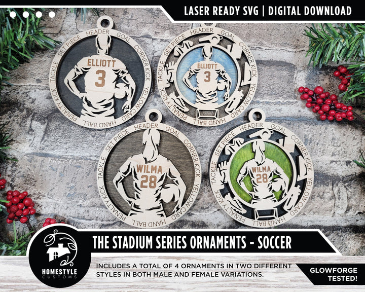 Soccer - Stadium Series Ornaments - 4 Unique designs - SVG, PDF, AI File Download - Sized for Glowforge