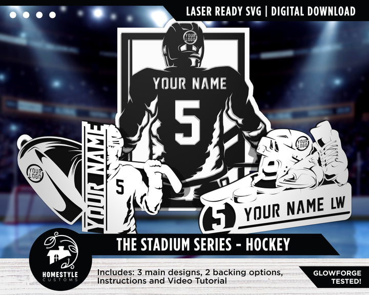 Stadium Series Hockey Signage - 3 Designs Included and two backing options - SVG File Download - Sized for Glowforge