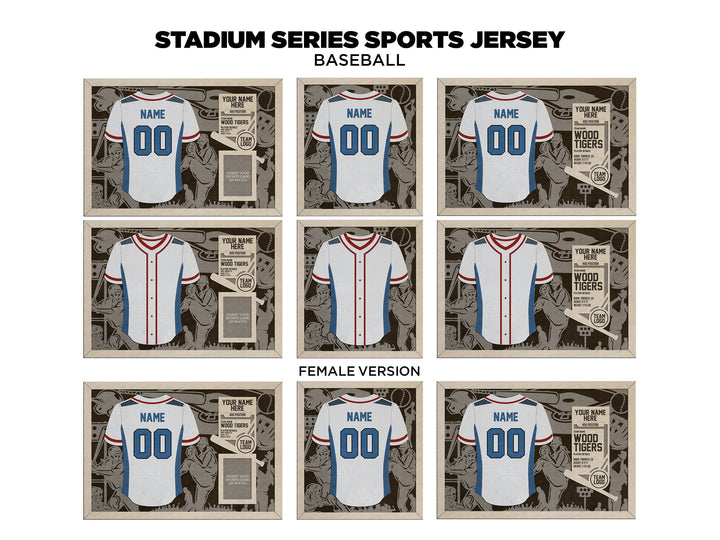 Introducing the Stadium Series Jersey collection featuring a variety of customizable jerseys across a number of popular sports that include Baseball, Football, Hockey, Basketball & Soccer. Customize the jersey with a last name and number and choose from a male, female or alternate background for your athlete.