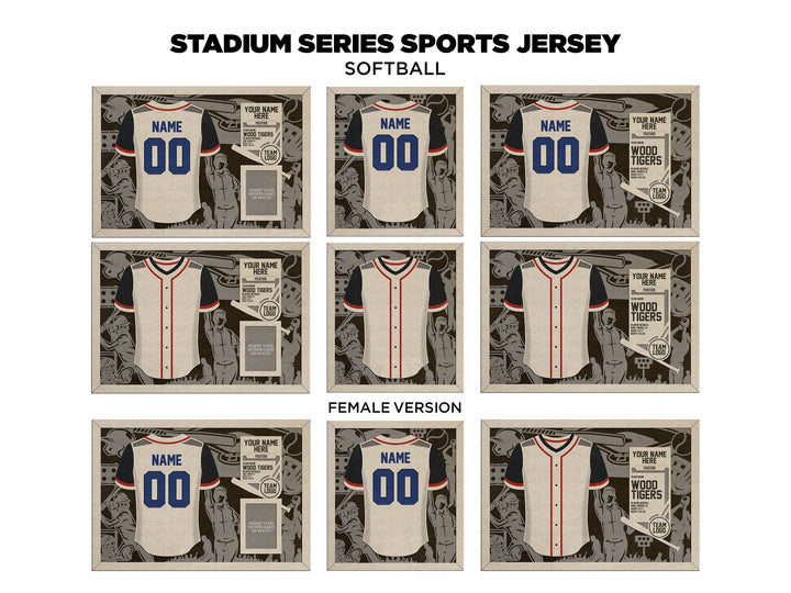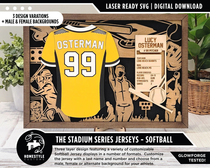 Stadium Series Jerseys - Softball - 3 Variations - Male, Female & Alternate Backgrounds - SVG File Download - Sized for Glowforge