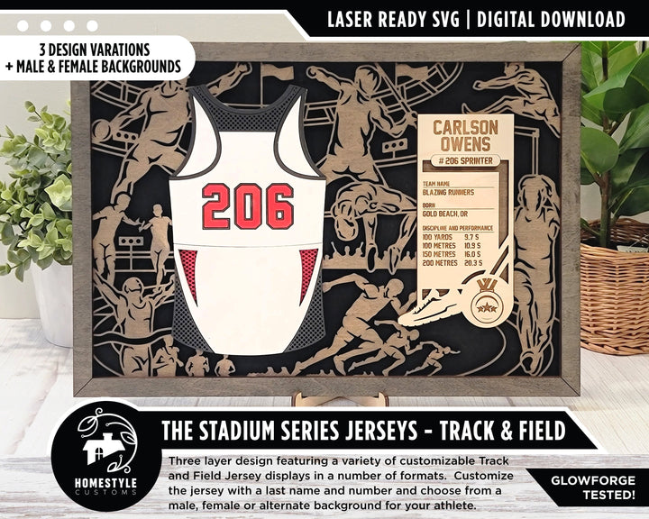 Stadium Series Jerseys - Track and Field - 3 Variations - Male, Female & Alternate Backgrounds - SVG File Download - Sized for Glowforge