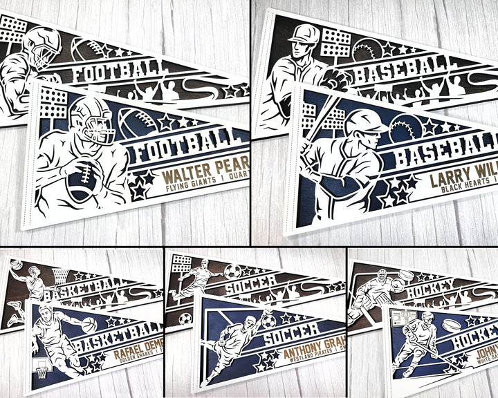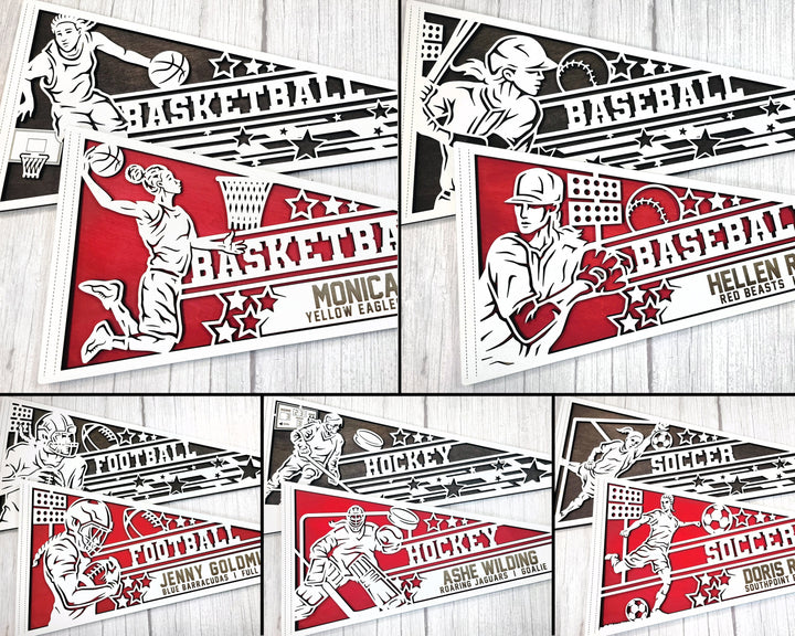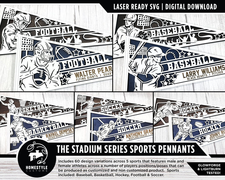 Stadium Series Sports Pennants - 5 Sports - 60 Variations Included - Male and Female Options - SVG Files - Tested on Glowforge & Lightburn