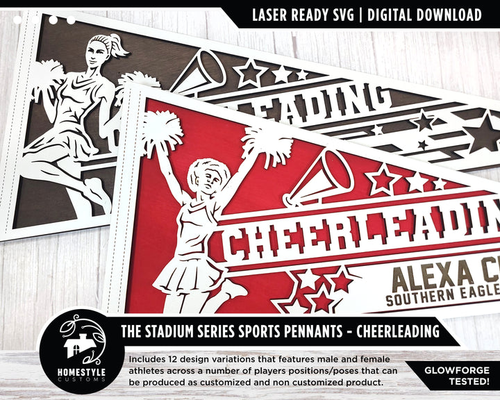 Stadium Series Sports Pennants - Cheerleading - 12 Variations Included - Male and Female Options - SVG Files - Tested on Glowforge & Lightburn