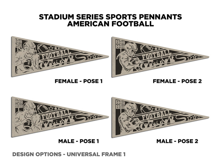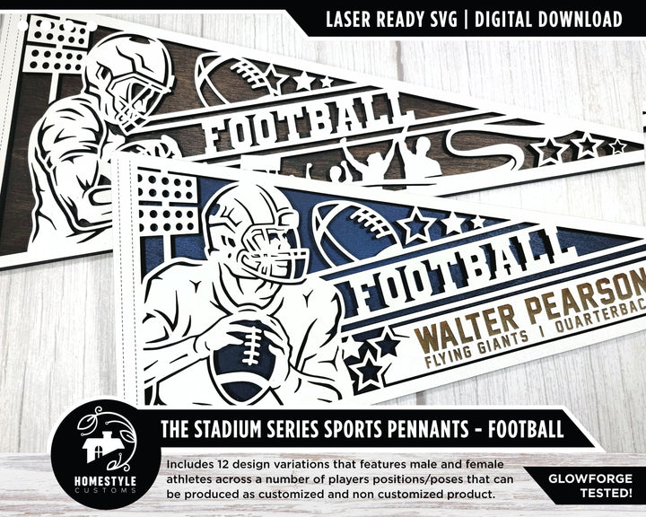 Stadium Series Sports Pennants - Football - 12 Variations Included - Male and Female Options - SVG Files - Tested on Glowforge & Lightburn