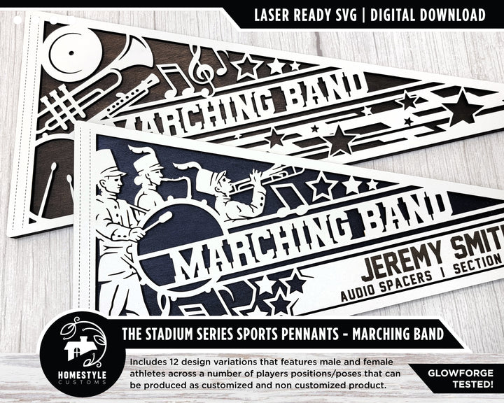 Stadium Series Sports Pennants - Marching Band - 6 Variations Included - Male and Female Options - Tested on Glowforge & Lightburn
