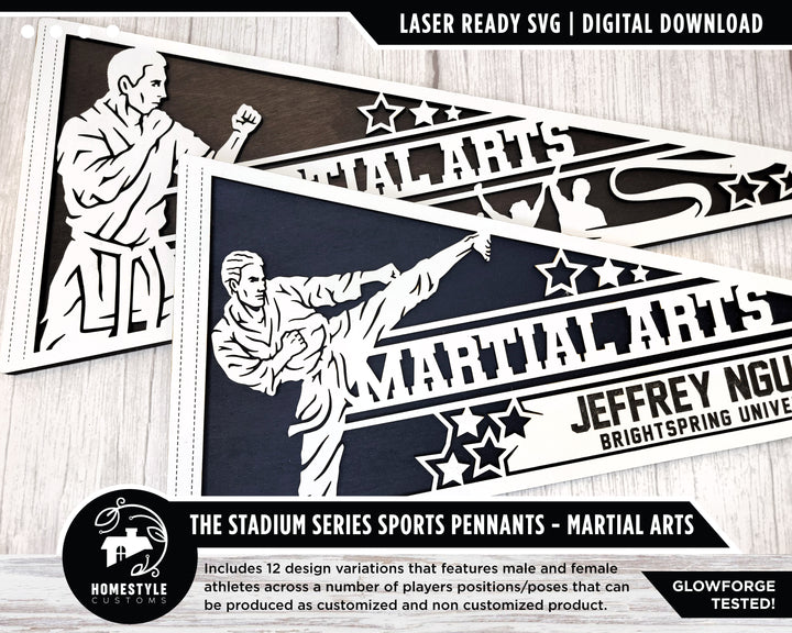 Stadium Series Sports Pennants - Martial Arts - 12 Variations Included - Male and Female Options - SVG Files - Tested on Glowforge & Lightburn