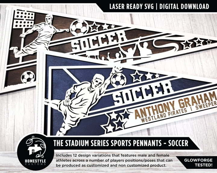 Stadium Series Sports Pennants - Soccer - 12 Variations Included - Male and Female Options - SVG Files - Tested on Glowforge & Lightburn