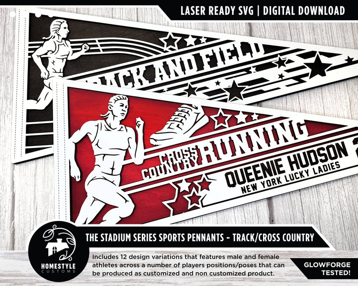 Stadium Series Sports Pennants - Track & Cross Country - 12 Variations Included - Male and Female Options - SVG Files - Tested on Glowforge & Lightburn