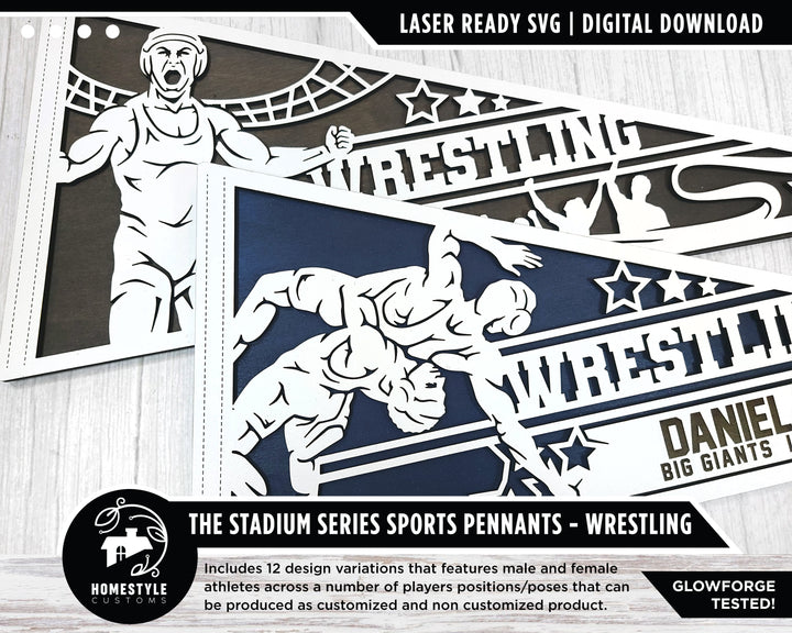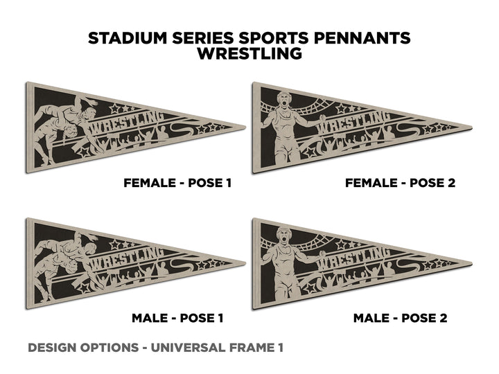 Stadium Series Sports Pennants - Wrestling - 12 Variations Included - Male and Female Options - Tested on Glowforge & Lightburn