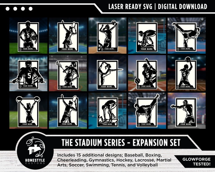 Stadium Series Sports Signage Expansion Set - 15 Designs - SVG File Download - Sized for Glowforge