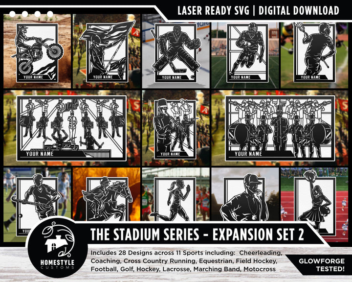 Stadium Series Sports Signage Expansion Set 2 - 28 Designs - SVG File Download - Sized for Glowforge