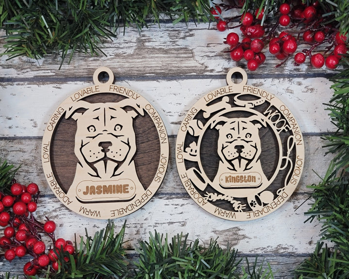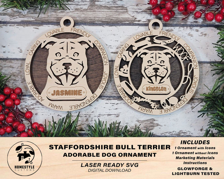 Staffordshire Bull Terrier - Adorable Dog Ornaments - 2 Ornaments included - SVG, PDF, AI File Download - Sized for Glowforge