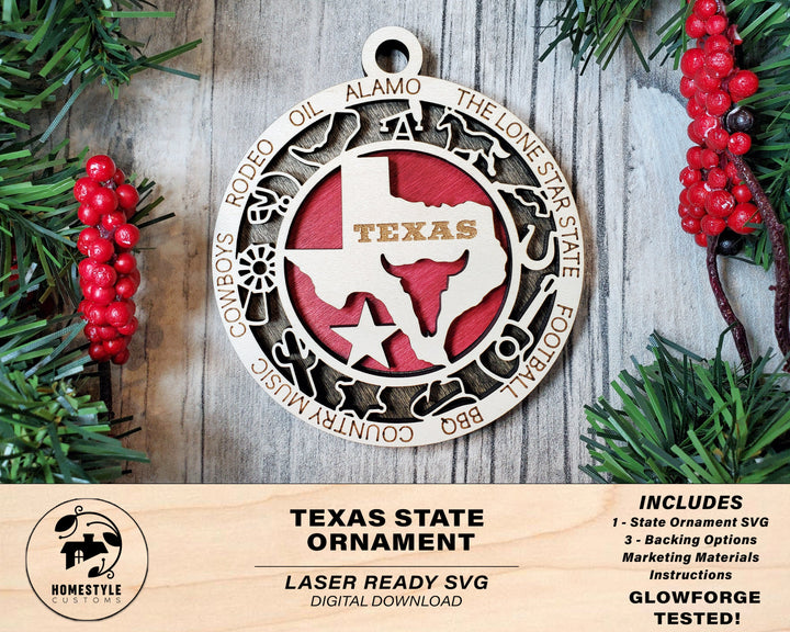 Texas State Ornament - SVG File Download - Sized for Glowforge - Laser Ready Digital Files