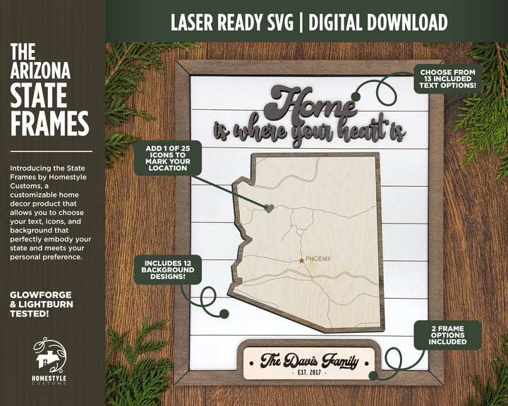 The Arizona State Frame - 13 text options, 12 backgrounds, 25 icons Included - Make over 7,500 designs - Glowforge & Lightburn Tested