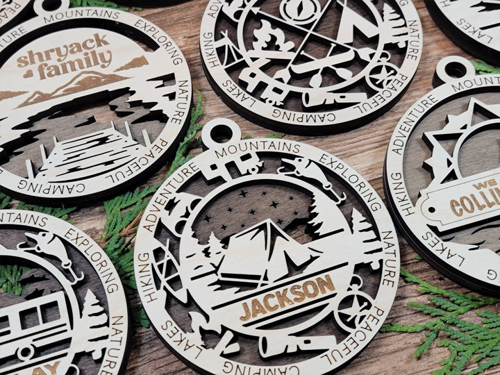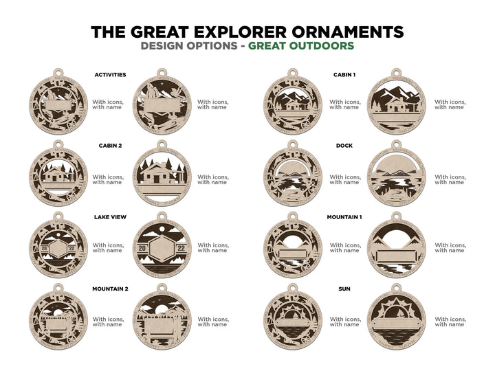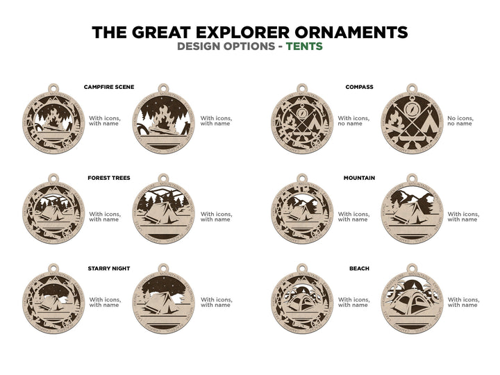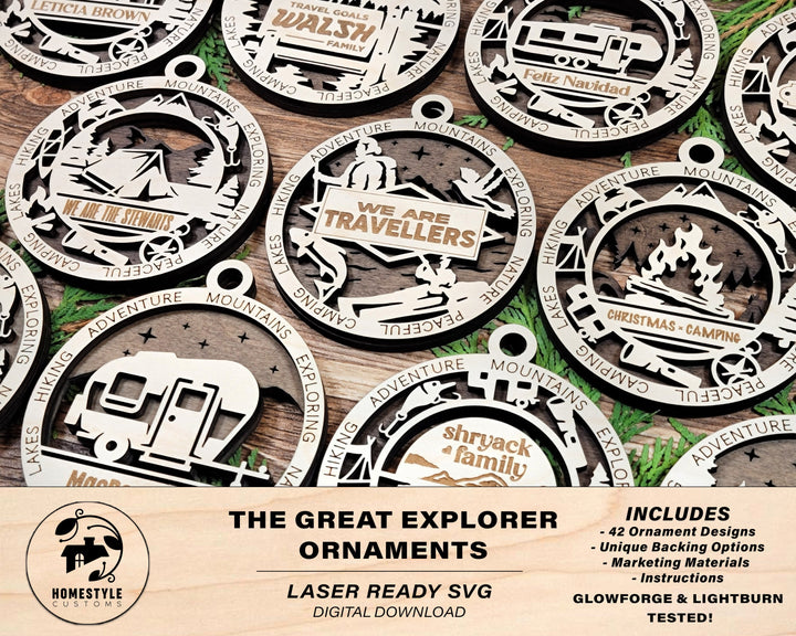 The Great Explorer Ornaments - Camping, Rv, Outdoor Designs - 42 Unique designs - SVG, PDF, AI File Download - Sized for Glowforge
