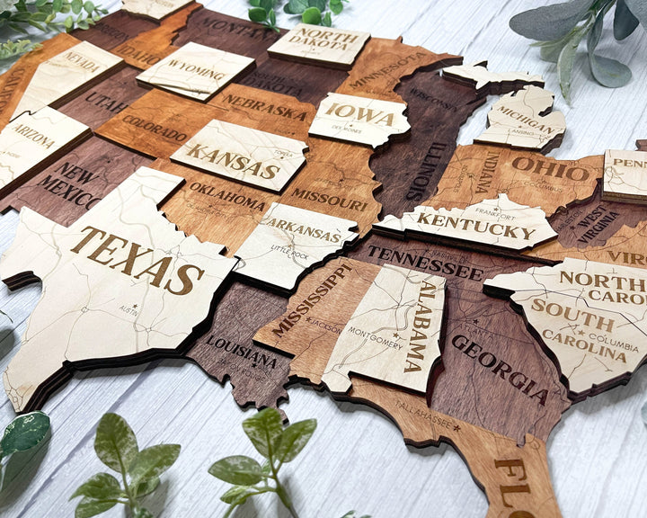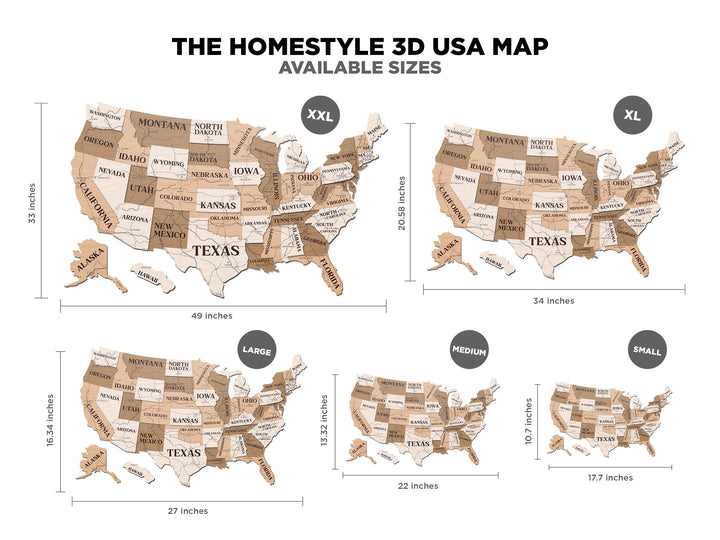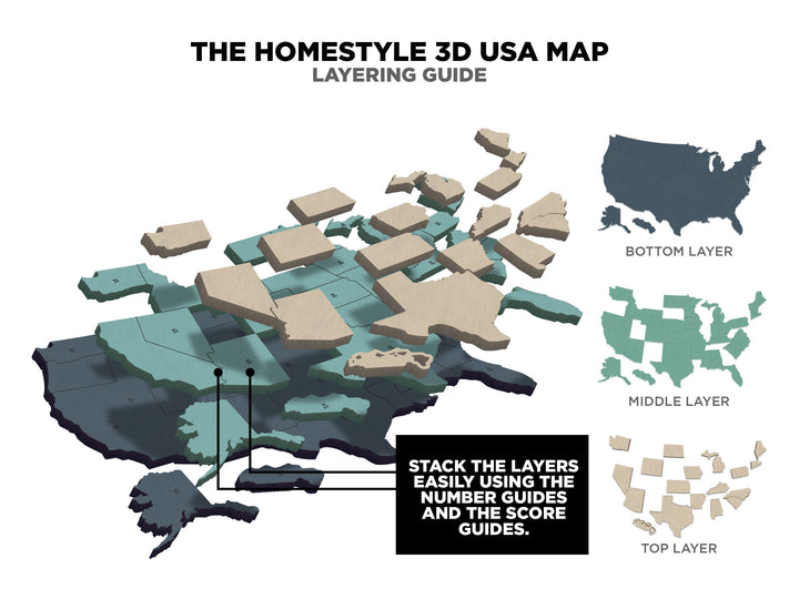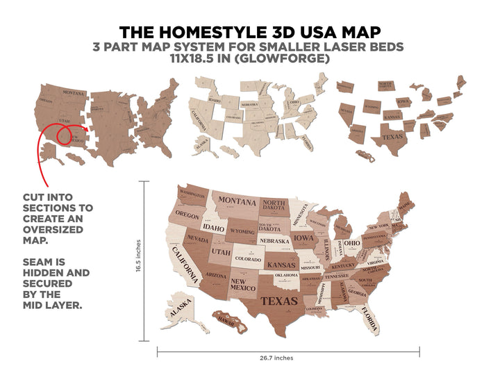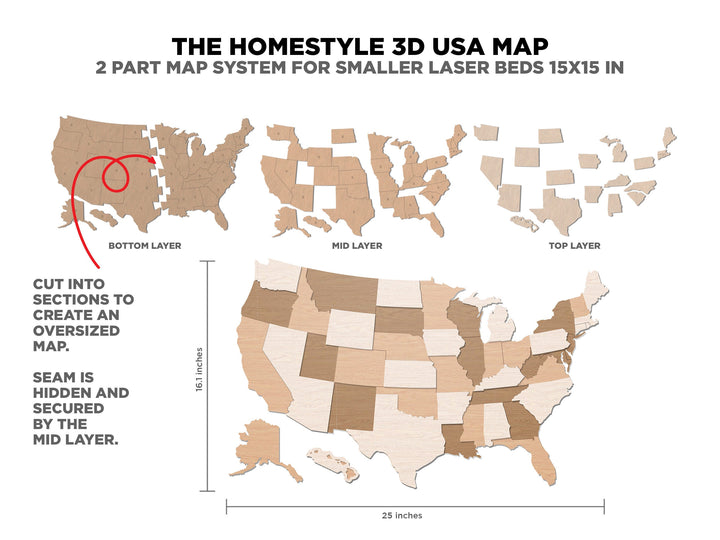 The Homestyle 3D USA Map - 3 Engrave, 7 Sizes with 2 Oversize Options for Small Lasers - SVG File Download - Glowforge & Lightburn Tested