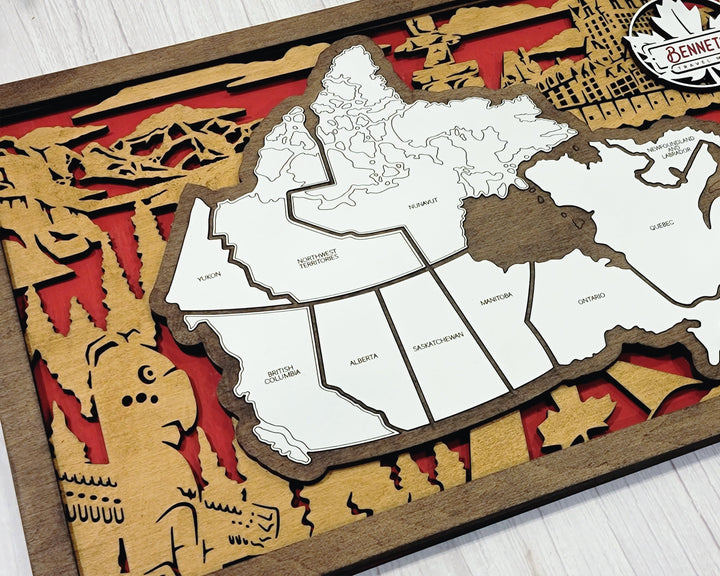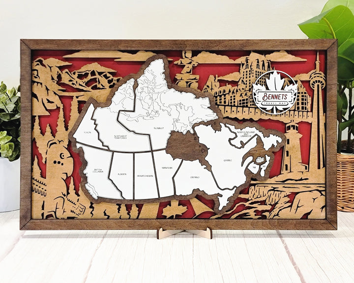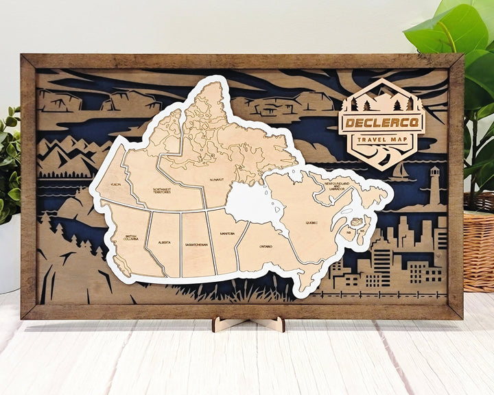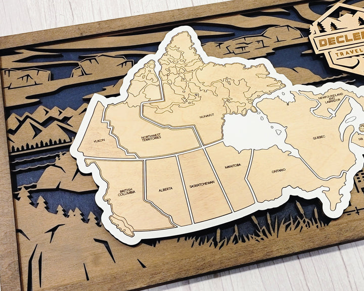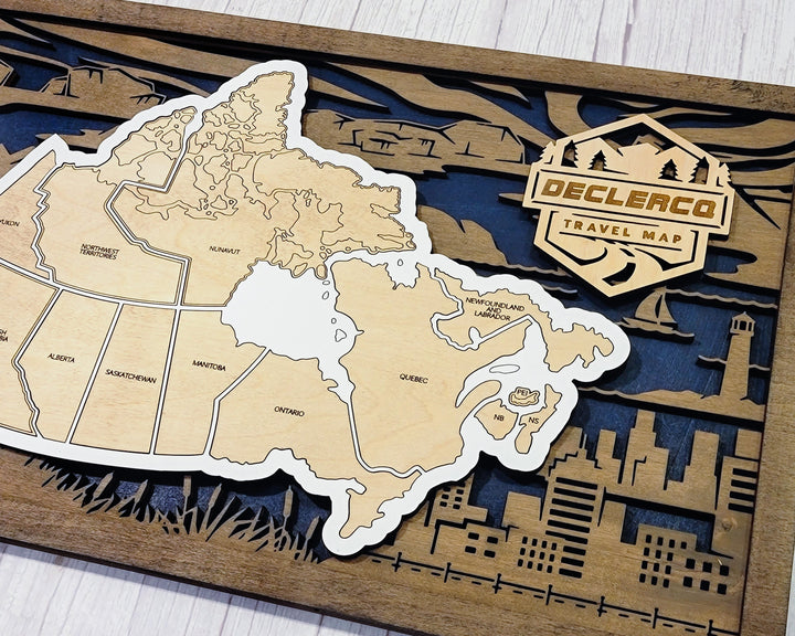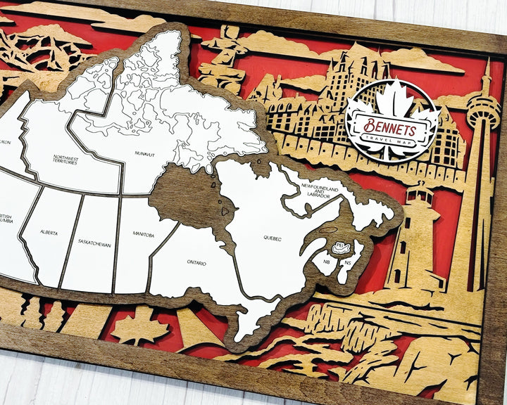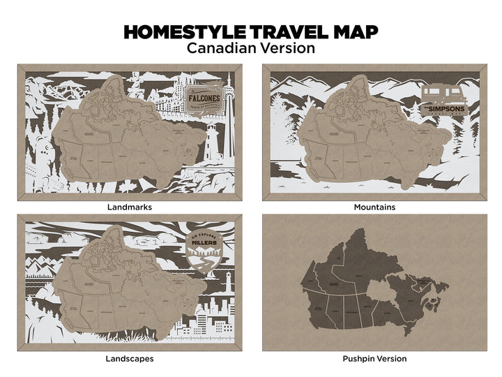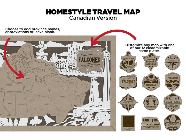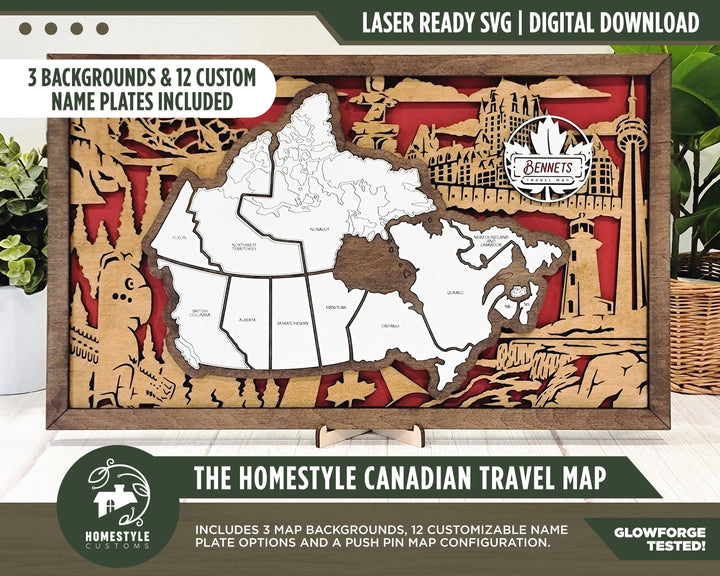 The Homestyle Canadian Travel Map - 3 Backgrounds & 12 Customizable Name Plates - SVG File Download - Sized for Glowforge