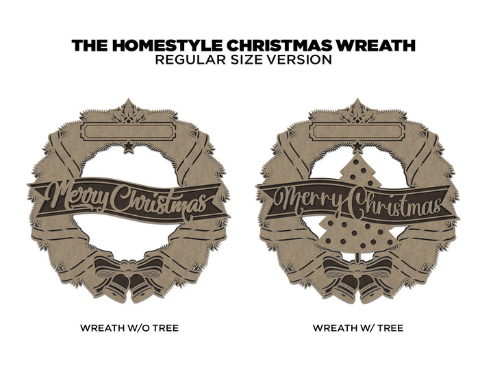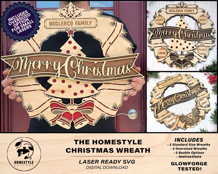 The Homestyle Christmas Wreath - Regular and Oversize versions included - SVG File Download - Sized & Tested in Glowforge