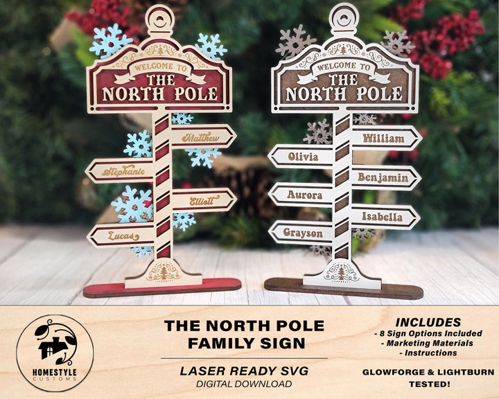 The North Pole Family Sign - Includes 2 to 8 Arrow Options - SVG File Download - Sized & Tested in Glowforge