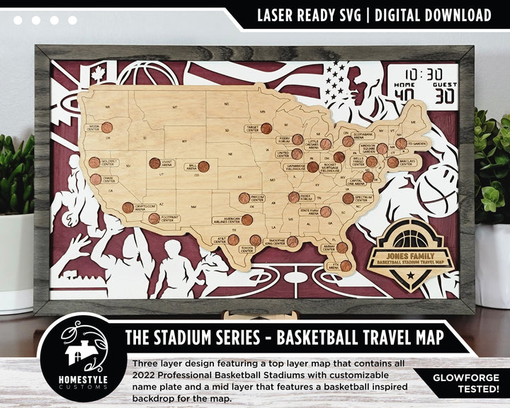 The Stadium Series Basketball Map - Stadium Tracker - SVG File Download - Sized for Glowforge