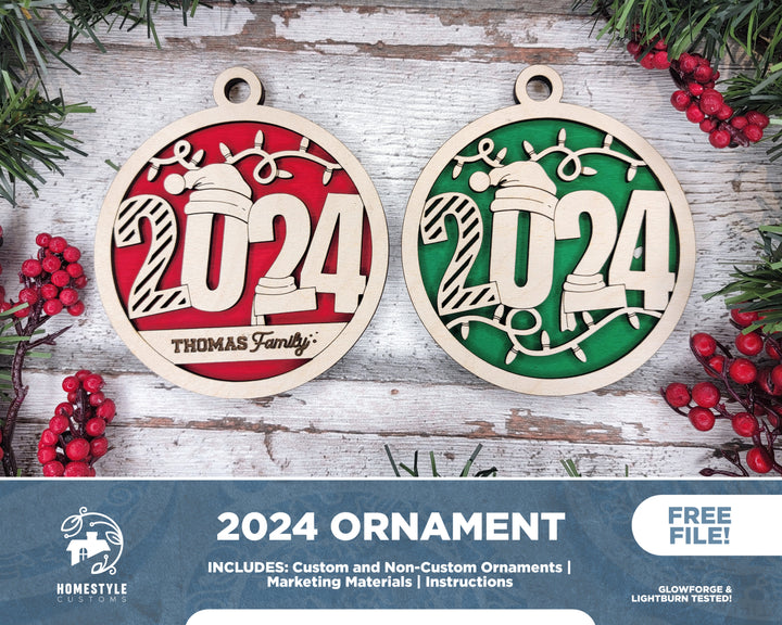 2024 Themed Ornament - SVG, PDF, AI File Download - Works with all lasers