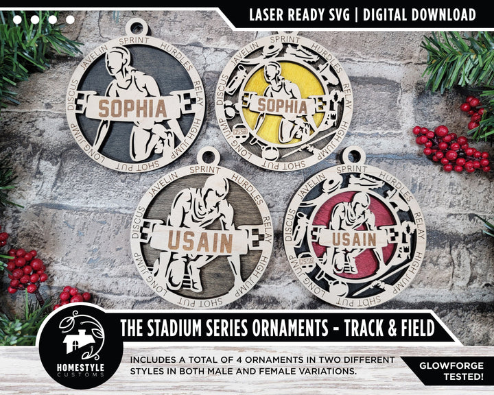 Track and Field - Stadium Series Ornaments - 4 Unique designs - SVG, PDF, AI File Download - Sized for Glowforge