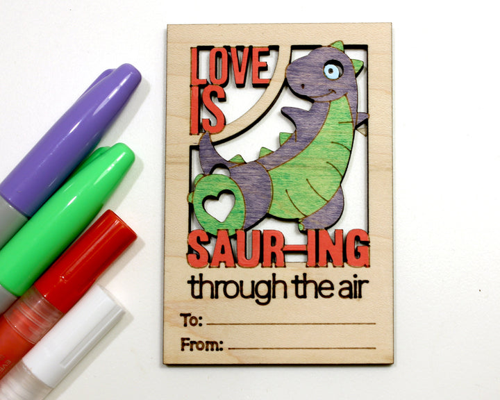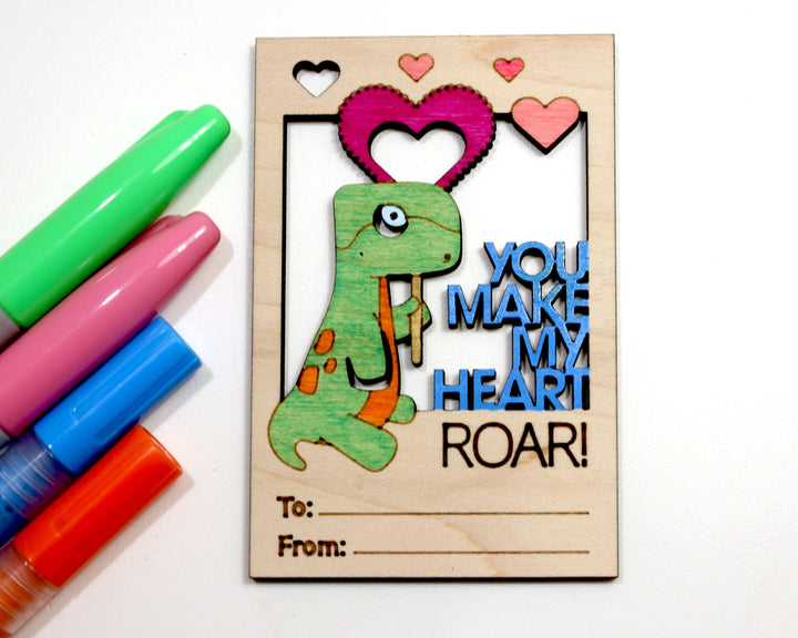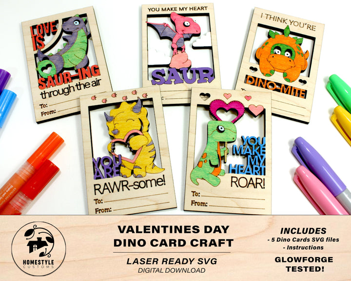 Valentines DIY Dinosaur Paint Card Craft - SVG File Download - Sized for Glowforge