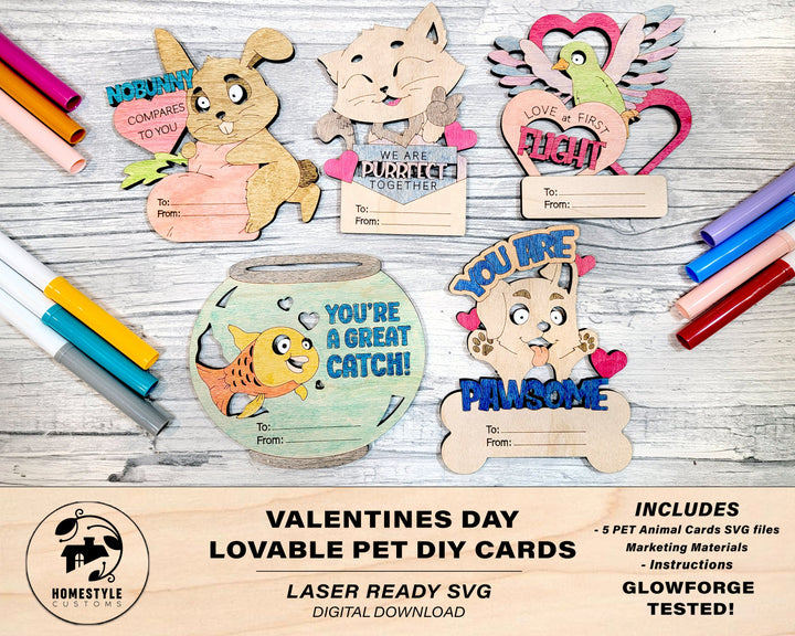 Valentines DIY Lovable Pet Paint Card Craft - SVG File Download - Sized & Tested on Glowforge