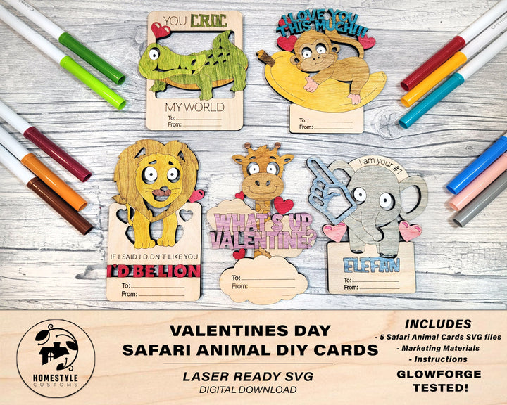 Valentines DIY Safari Paint Card Craft - SVG File Download - Sized & Tested on Glowforge