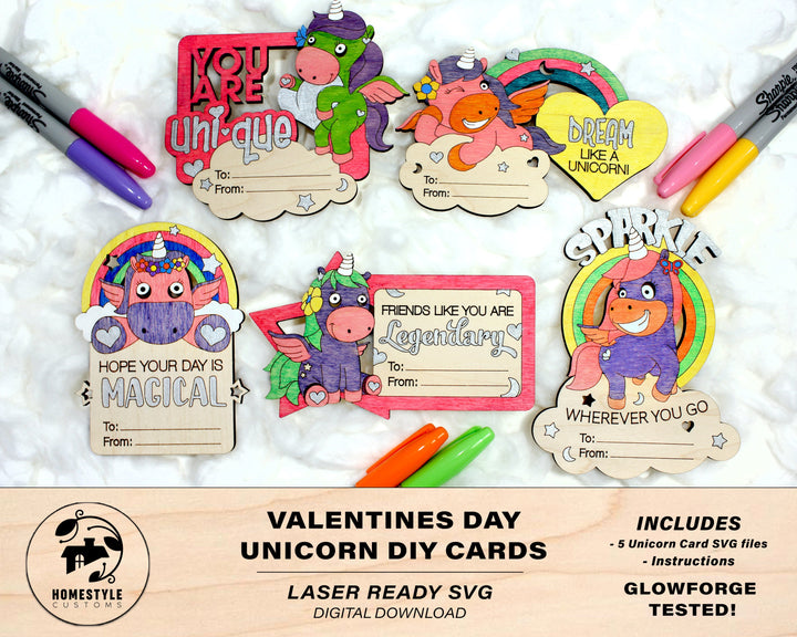 Valentines DIY Unicorn Paint Card Craft - SVG File Download - Sized & Tested on Glowforge