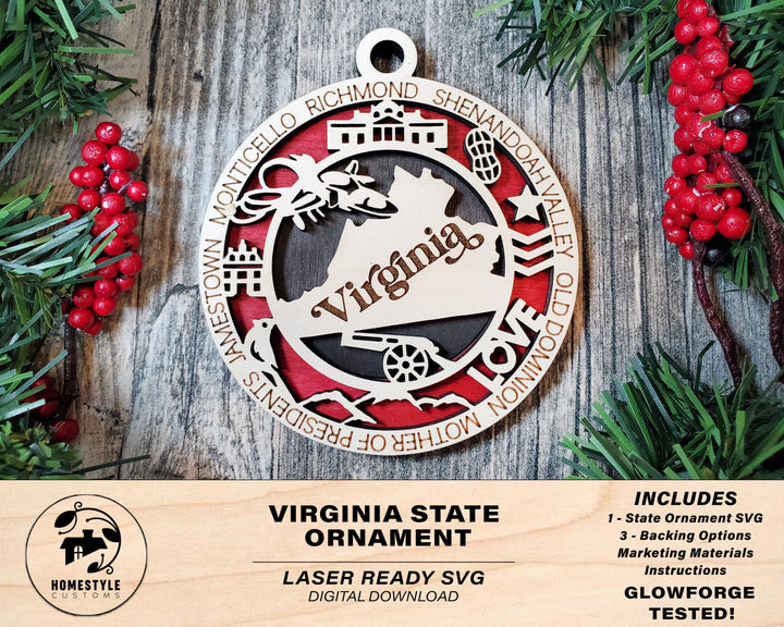 Virginia State Ornament - SVG File Download - Sized for Glowforge - Laser Ready Digital Files