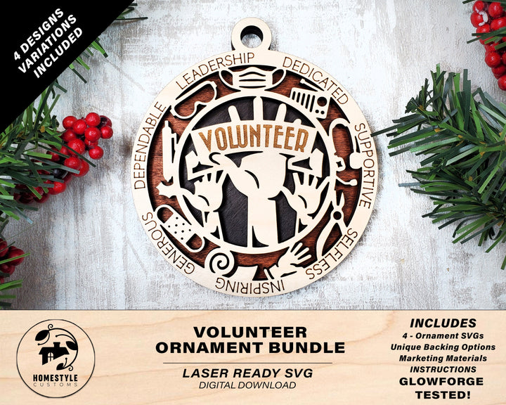 Volunteer Ornament Bundle - 4 Unique designs - SVG, PDF, AI File Download - Sized for Glowforge