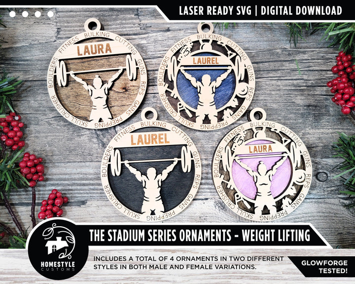 Weight Lifting - Stadium Series Ornaments - 4 Unique designs - SVG, PDF, AI File Download - Sized for Glowforge