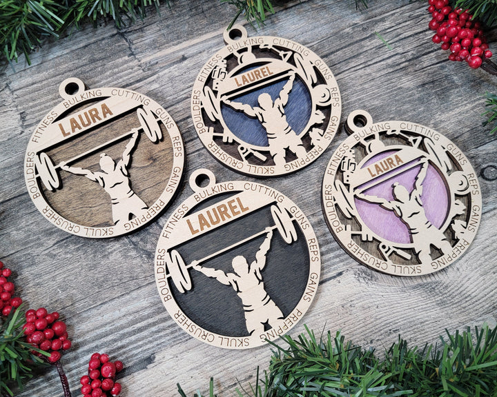 4 - Weight Lifting ornaments (Sized at 4") Includes 2 styles and a male and female variation. See product photos for everything included.