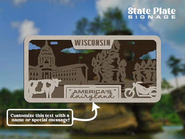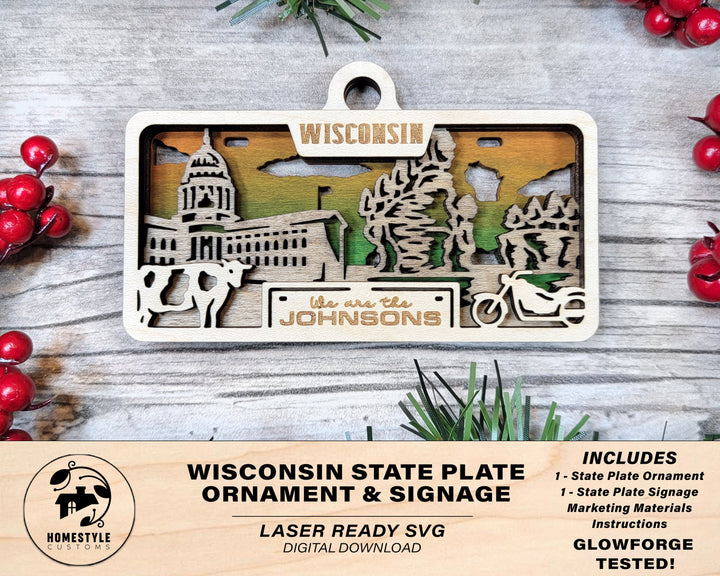 Wisconsin State Plate Ornament and Signage - SVG File Download - Sized for Glowforge - Laser Ready Digital Files