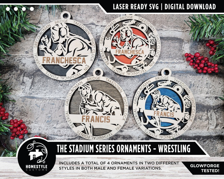 Wrestling - Stadium Series Ornaments - 4 Unique designs - SVG, PDF, AI File Download - Sized for Glowforge